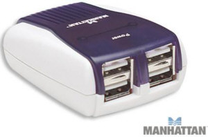 para usarse y "hot-swappable" se puede cambiar la conexión de puerto USB durante su uso Cuatro puertos USB, Tipo A hembra Velocidad de transmisión 12 Mbps Soporta USB 1.1